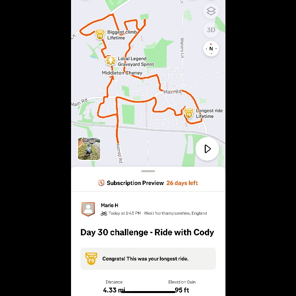 Day 30- Personal best cycling distances